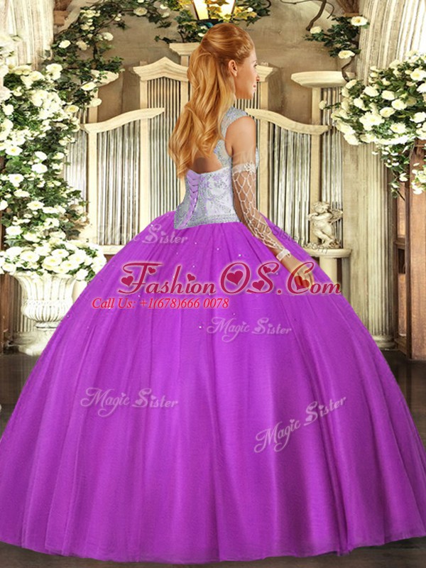 Floor Length Lace Up Quinceanera Dress Eggplant Purple for Sweet 16 and Quinceanera with Beading
