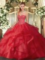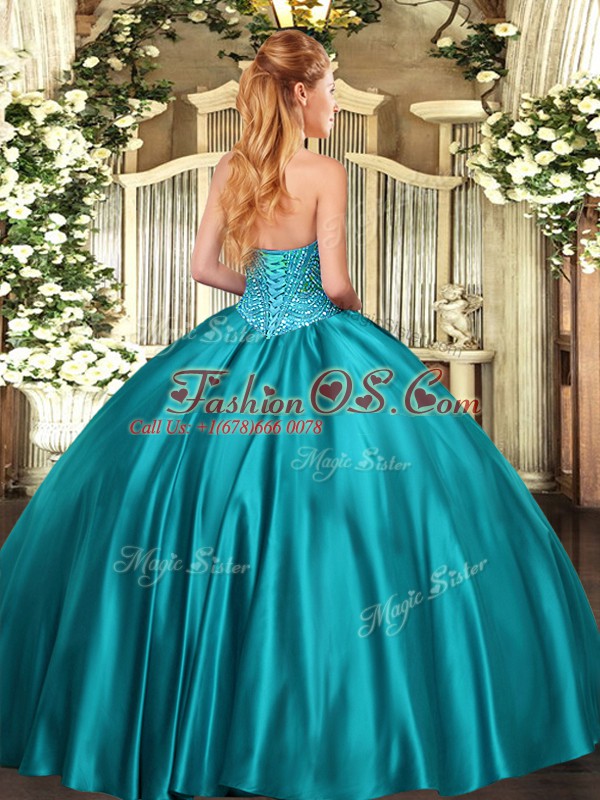 Hot Selling Fuchsia Lace Up Sweetheart Beading 15 Quinceanera Dress Satin Sleeveless