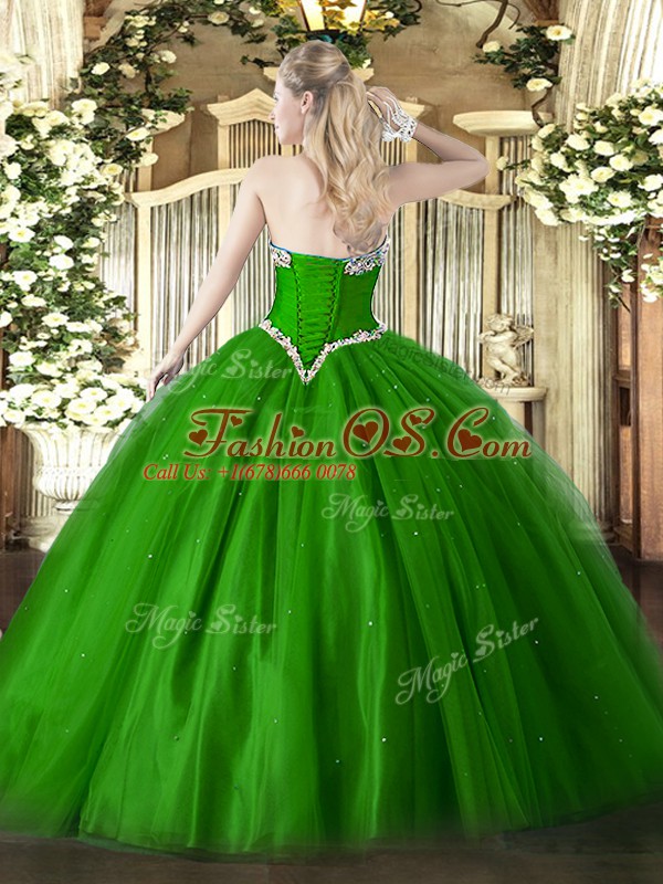 Pretty Beading Sweet 16 Quinceanera Dress Olive Green Lace Up Sleeveless Floor Length