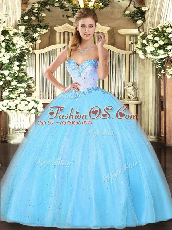Beautiful Aqua Blue Lace Up Sweetheart Beading 15 Quinceanera Dress Tulle Sleeveless