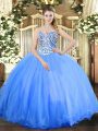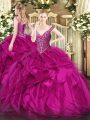Stunning Sleeveless Beading and Lace and Ruffled Layers Zipper Sweet 16 Dresses with Fuchsia Brush Train