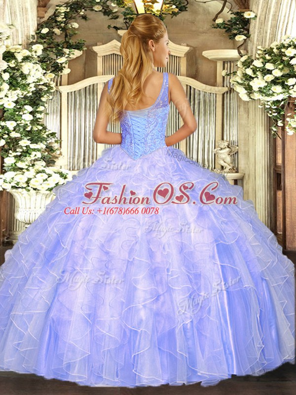Luxury Lavender V-neck Neckline Beading and Ruffles Ball Gown Prom Dress Sleeveless Lace Up