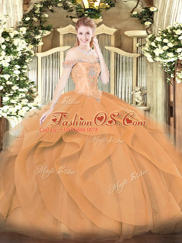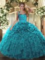 Clearance Sleeveless Lace Up Floor Length Beading and Ruffles Sweet 16 Quinceanera Dress