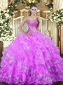 Wine Red Scoop Neckline Beading and Ruffles Quinceanera Dresses Sleeveless Zipper