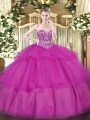 Ball Gowns Quinceanera Gown Lavender Halter Top Tulle Sleeveless Floor Length Lace Up