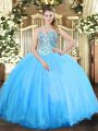 Amazing Fuchsia Ball Gowns Satin Sweetheart Sleeveless Beading Floor Length Lace Up 15th Birthday Dress