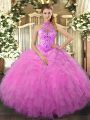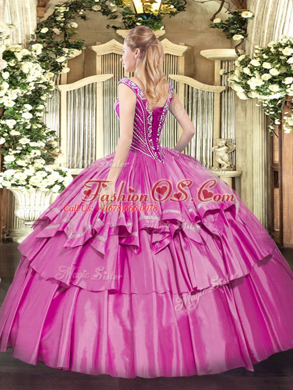 Ball Gowns Beading and Ruffled Layers Quinceanera Gowns Lace Up Organza and Taffeta Sleeveless Floor Length