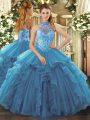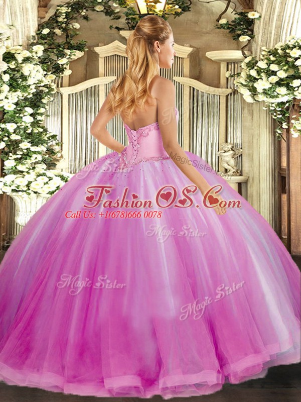 Lilac Lace Up Sweetheart Beading and Ruffles 15th Birthday Dress Tulle Sleeveless