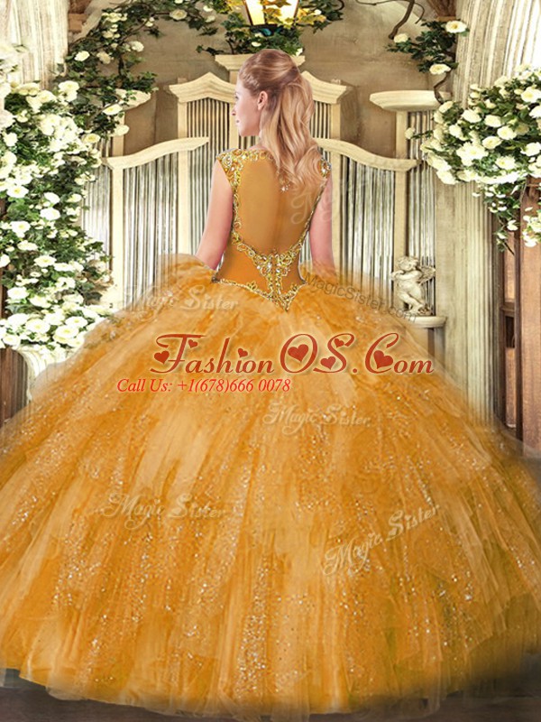Sleeveless Floor Length Beading and Ruffles Zipper Sweet 16 Quinceanera Dress with Apple Green