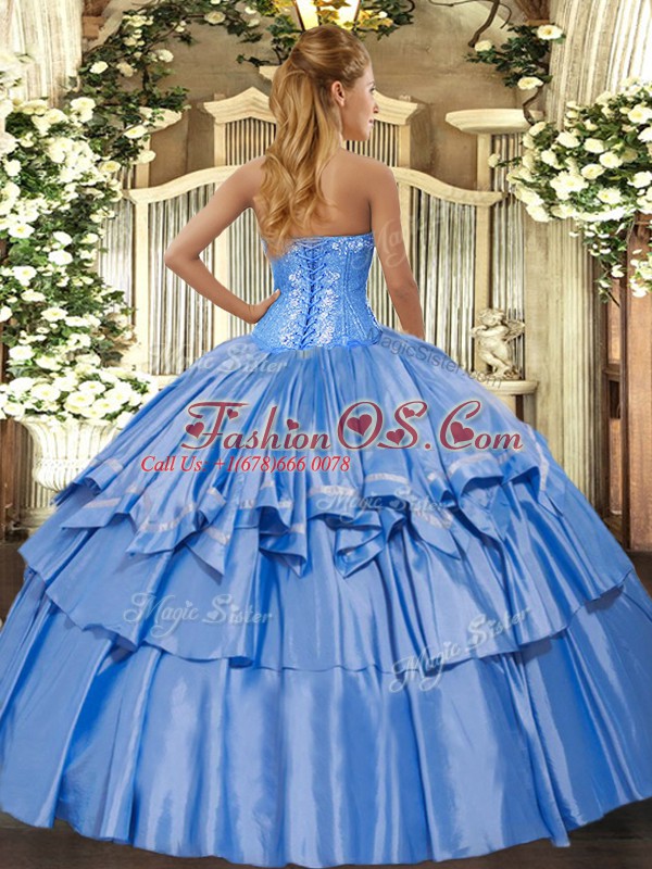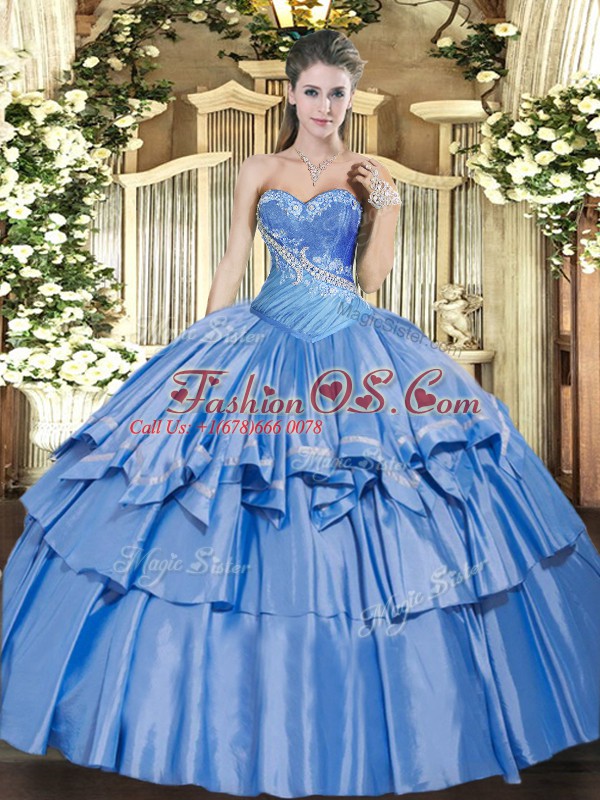 Organza and Taffeta Sweetheart Sleeveless Lace Up Beading and Ruffles Quinceanera Gowns in Baby Blue