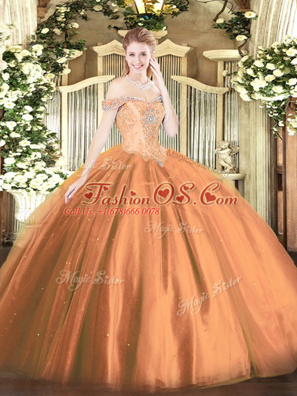 Off The Shoulder Sleeveless Tulle Vestidos de Quinceanera Beading Lace Up