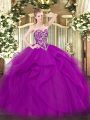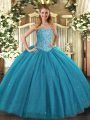 Floor Length Lace Up Sweet 16 Dresses Teal for Sweet 16 and Quinceanera with Beading and Ruffles