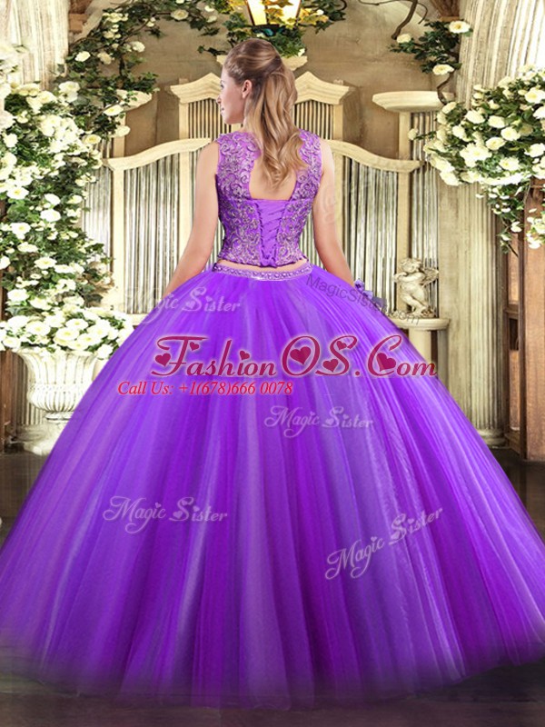 Ideal Scoop Sleeveless Lace Up 15 Quinceanera Dress Hot Pink Tulle