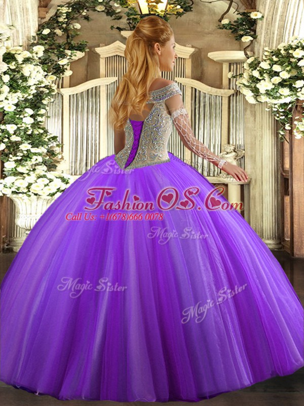 Custom Made Tulle Off The Shoulder Sleeveless Lace Up Beading Vestidos de Quinceanera in Hot Pink