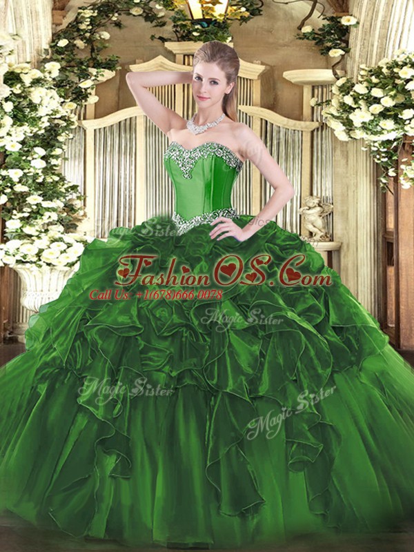 Floor Length Dark Green Sweet 16 Quinceanera Dress Sweetheart Sleeveless Lace Up