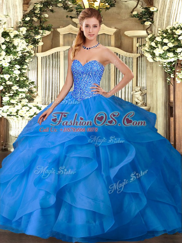 Cute Ball Gowns Sweet 16 Dresses Blue Sweetheart Tulle Sleeveless Floor Length Lace Up