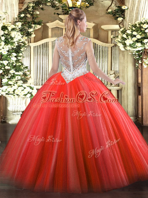 Gold Zipper Scoop Beading 15 Quinceanera Dress Tulle Sleeveless