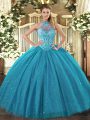 Stylish Lavender Tulle Lace Up Vestidos de Quinceanera Sleeveless Asymmetrical Beading and Ruffles