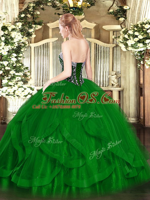 Ideal Green Sleeveless Tulle Lace Up Quinceanera Dresses for Military Ball and Sweet 16 and Quinceanera