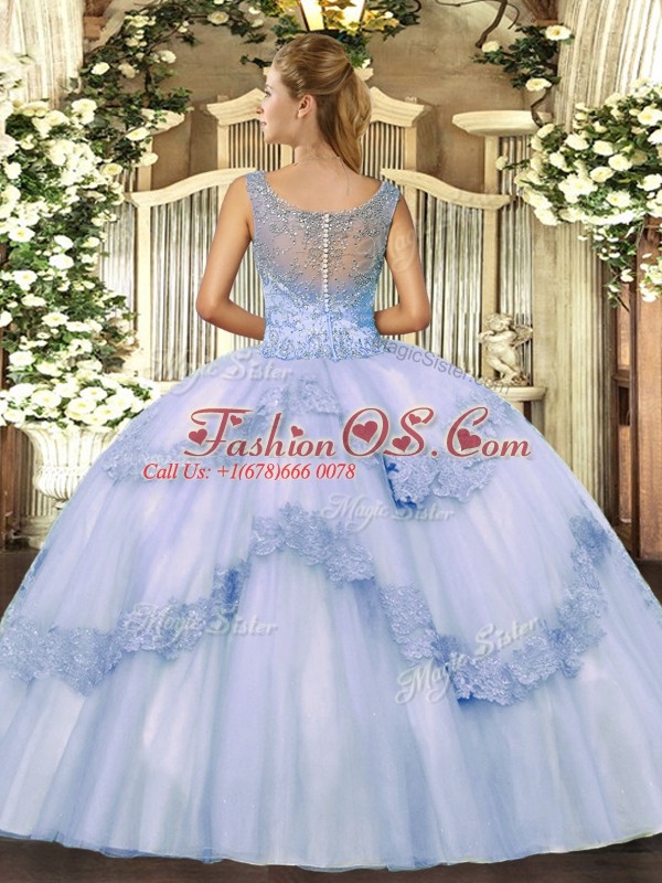 Modest Lilac Tulle Clasp Handle Ball Gown Prom Dress Sleeveless Floor Length Beading and Appliques
