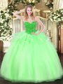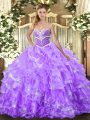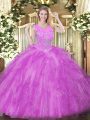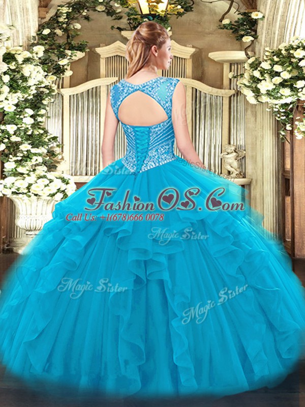 Red Ball Gowns Tulle Scoop Sleeveless Beading and Ruffles Floor Length Lace Up 15 Quinceanera Dress