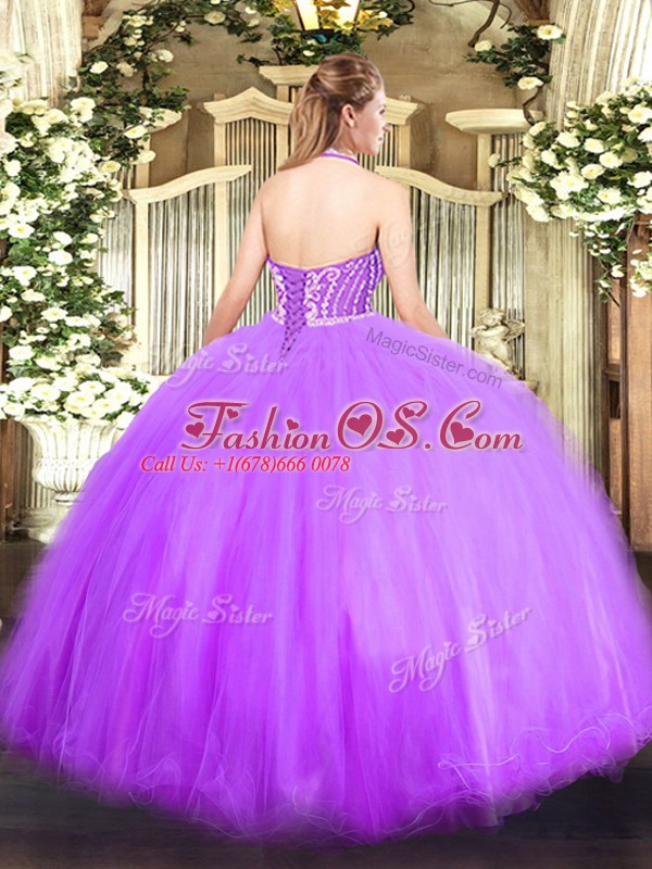 Orange Tulle Lace Up Quinceanera Gowns Sleeveless Floor Length Beading