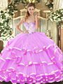 Sleeveless Tulle Floor Length Lace Up 15 Quinceanera Dress in Lavender with Beading