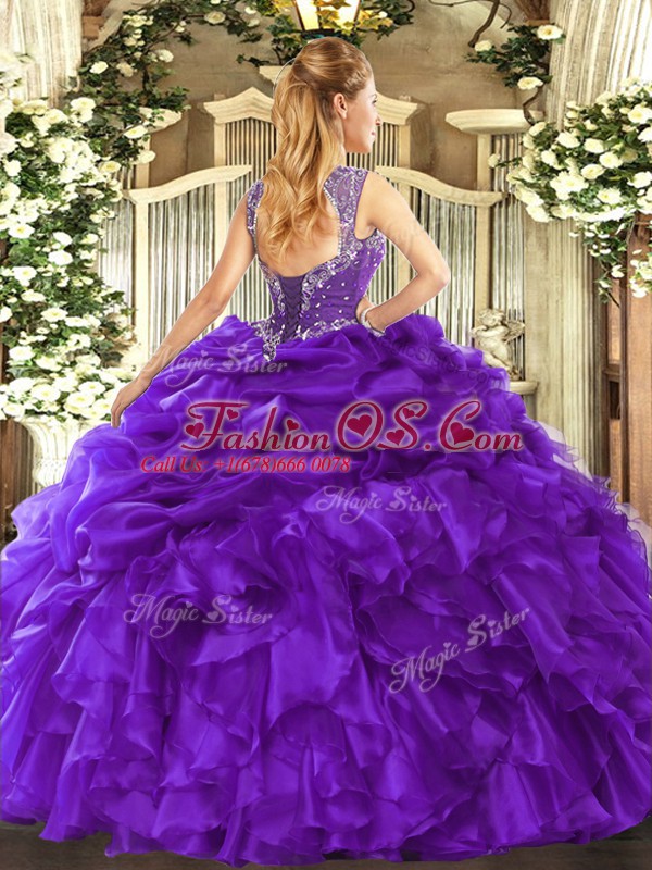 Admirable Sleeveless Lace Up Floor Length Beading and Ruffles and Pick Ups Quinceanera Gown