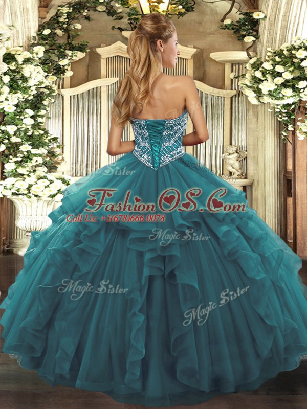 Luxury Green Ball Gowns Beading and Ruffles Sweet 16 Dresses Lace Up Tulle Sleeveless Floor Length