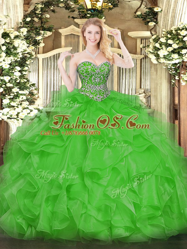 Elegant Floor Length Green Quinceanera Gowns Sweetheart Sleeveless Lace Up