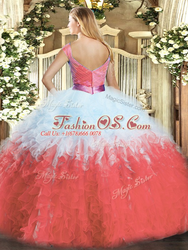 Cute Organza Sleeveless Floor Length 15 Quinceanera Dress and Ruffles