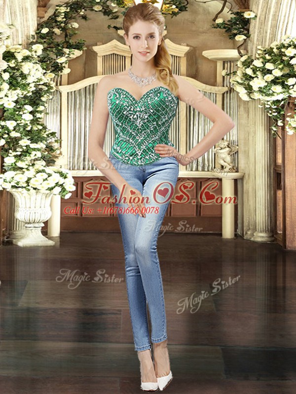 Comfortable Dark Green Tulle Lace Up Sweetheart Sleeveless Floor Length 15th Birthday Dress Beading