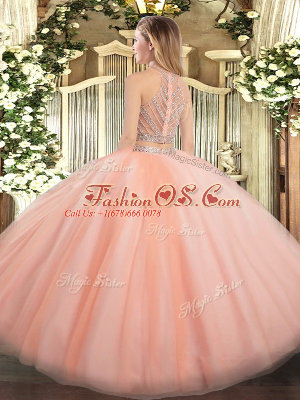 Enchanting High-neck Sleeveless Tulle 15 Quinceanera Dress Beading and Ruffles Zipper
