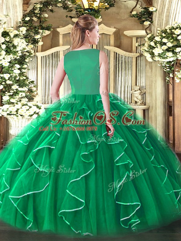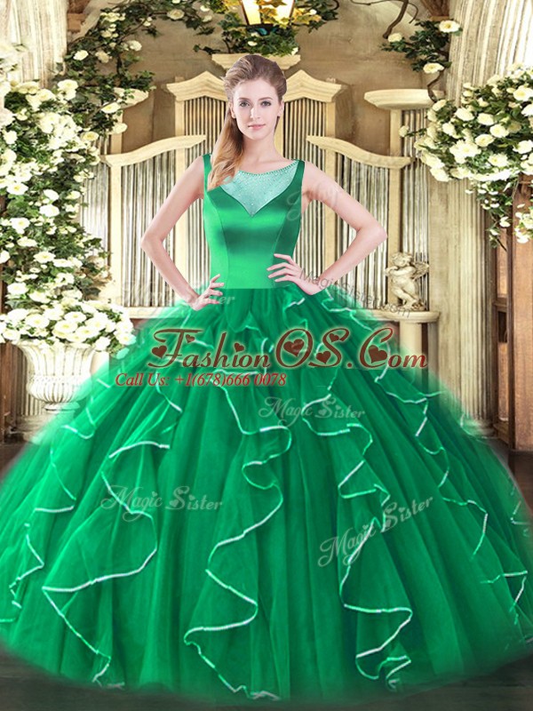 Turquoise Scoop Neckline Beading and Ruffles Sweet 16 Quinceanera Dress Sleeveless Side Zipper