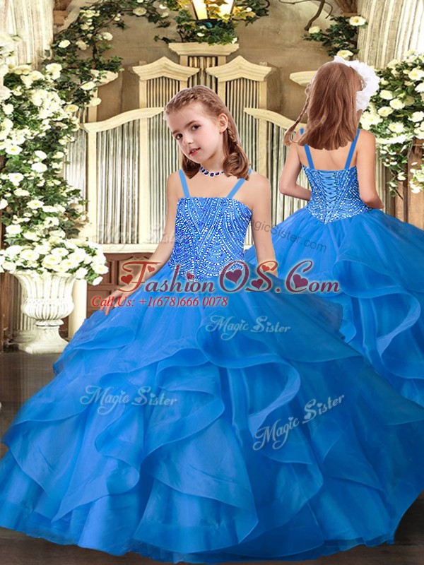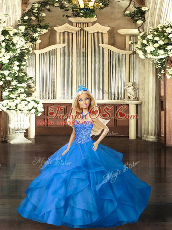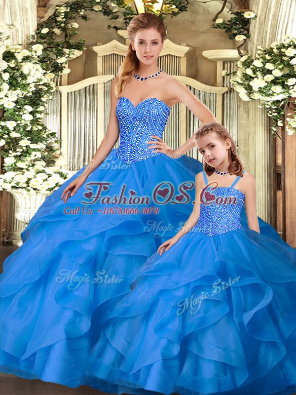 Stunning Blue Ball Gowns Tulle Sweetheart Sleeveless Beading and Ruffles Floor Length Lace Up Quinceanera Gowns