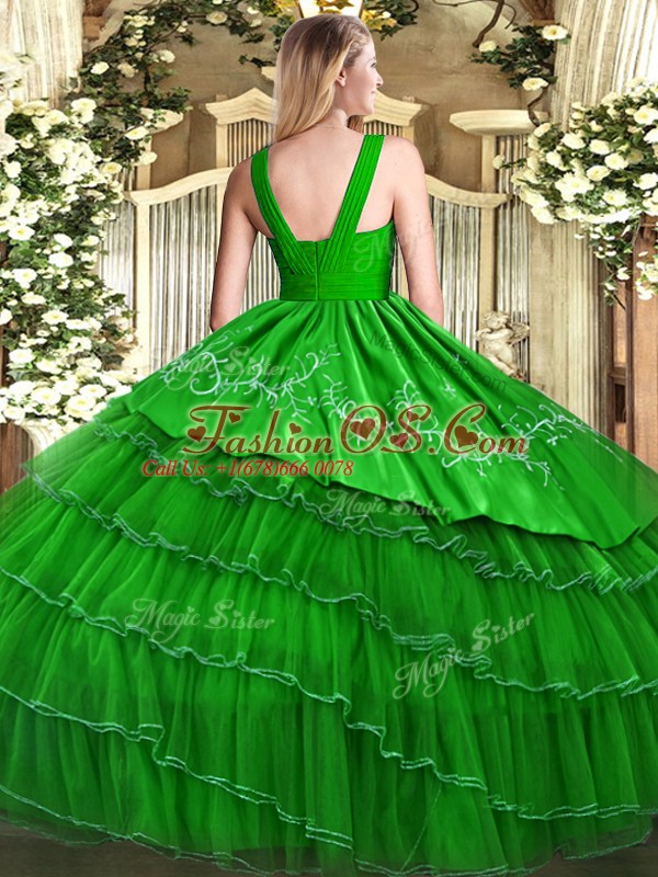Popular Satin and Organza Sleeveless Floor Length Quinceanera Dress and Embroidery and Ruffled Layers