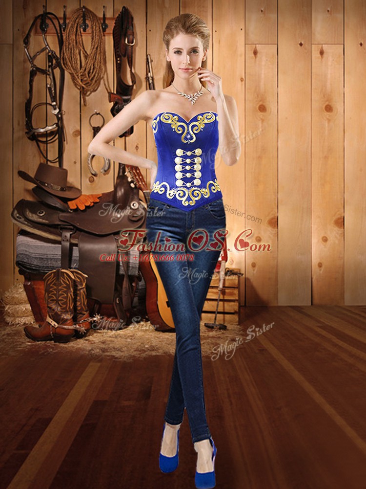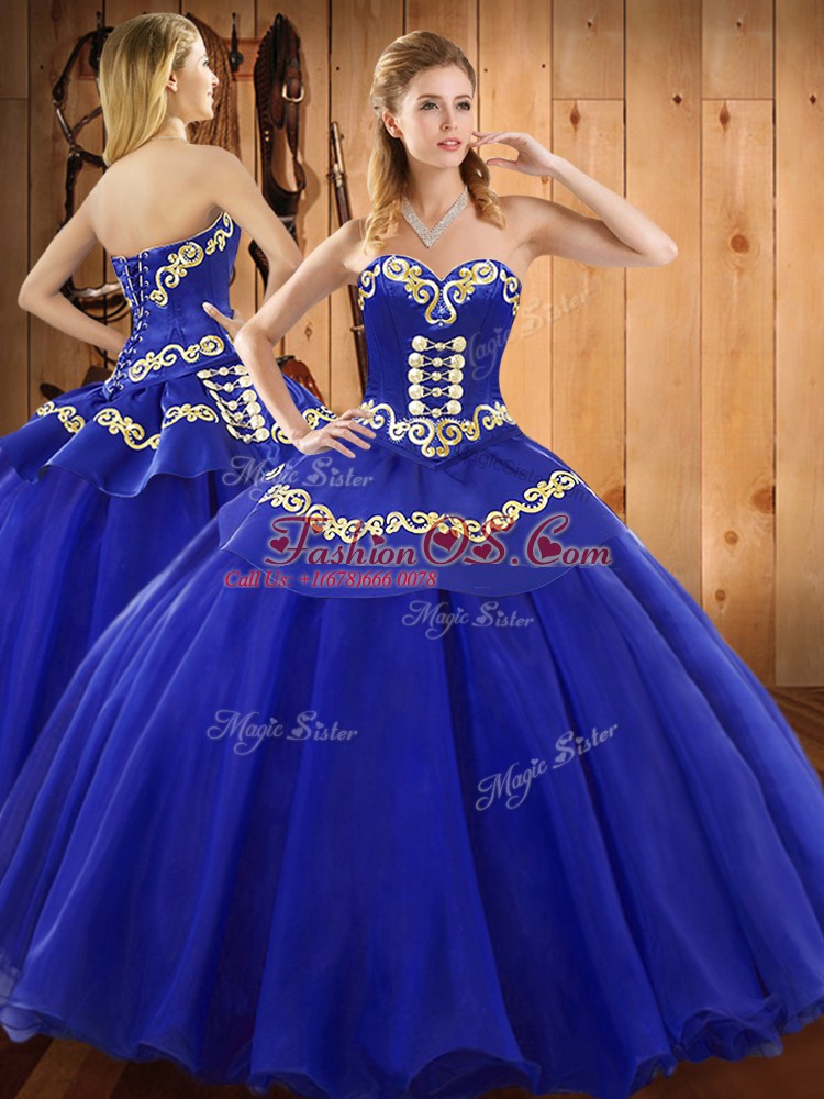 Blue Sweetheart Lace Up Embroidery Quinceanera Gown Sleeveless