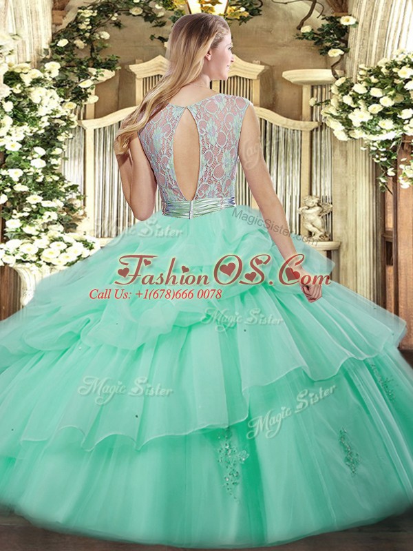 Tulle Scoop Sleeveless Backless Beading and Ruffled Layers Quinceanera Dresses in Apple Green