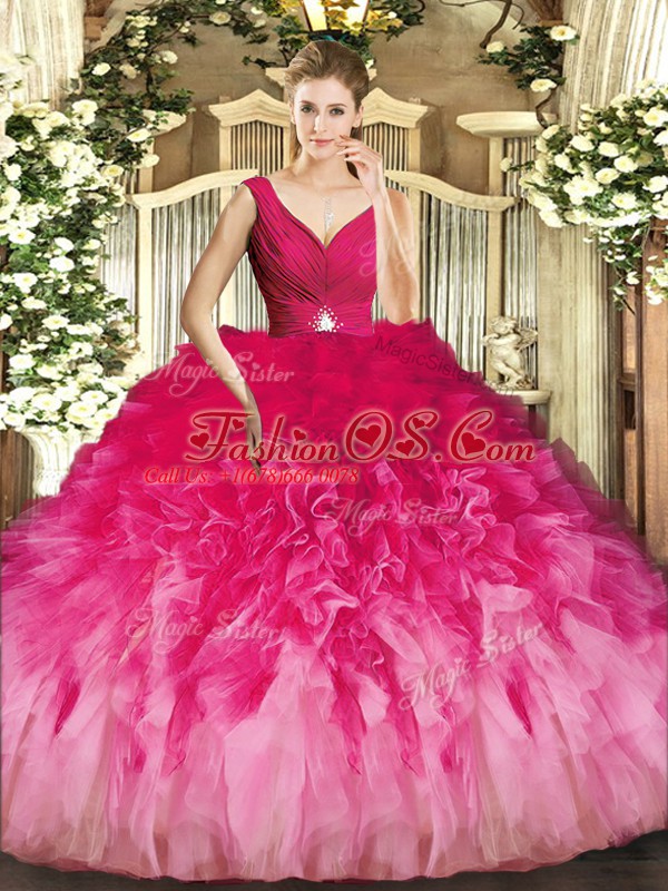 Luxury Multi-color Sleeveless Beading and Ruffles Floor Length Quinceanera Dress