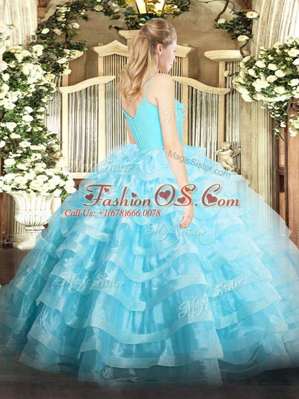 Lavender Organza Zipper Spaghetti Straps Sleeveless Floor Length Quinceanera Gown Ruffled Layers