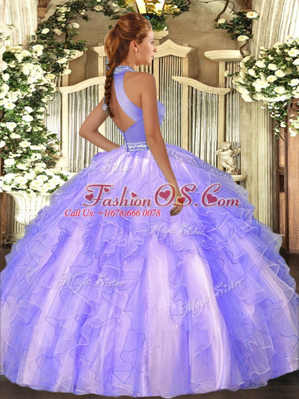 Glamorous Lilac Sleeveless Organza Backless 15th Birthday Dress for Military Ball and Sweet 16 and Quinceanera