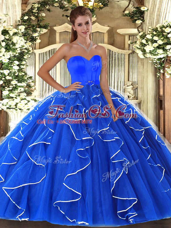 Ball Gowns Quince Ball Gowns Blue Sweetheart Organza Sleeveless Floor Length Lace Up