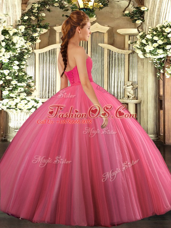 Sophisticated Floor Length Coral Red Sweet 16 Dresses Tulle Sleeveless Beading
