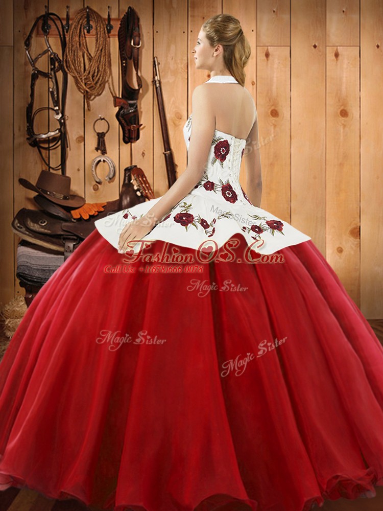 Glamorous Embroidery Sweet 16 Dress Turquoise Lace Up Sleeveless Floor Length