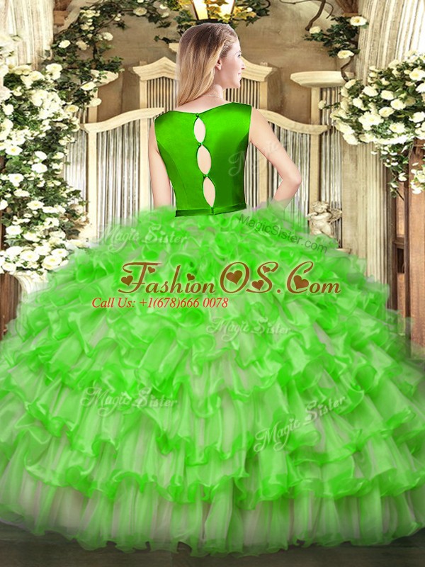 Scoop Sleeveless Ball Gown Prom Dress Floor Length Ruffled Layers Fuchsia Organza