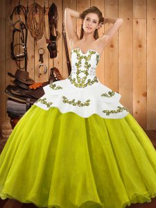 Dynamic Multi-color Ball Gowns Strapless Sleeveless Satin and Fabric With Rolling Flowers With Train Sweep Train Lace Up Embroidery 15th Birthday Dress
