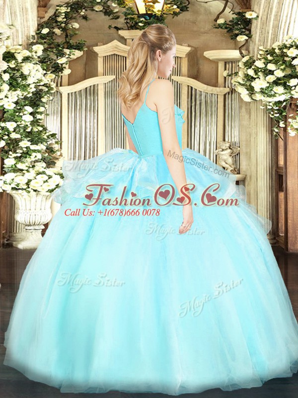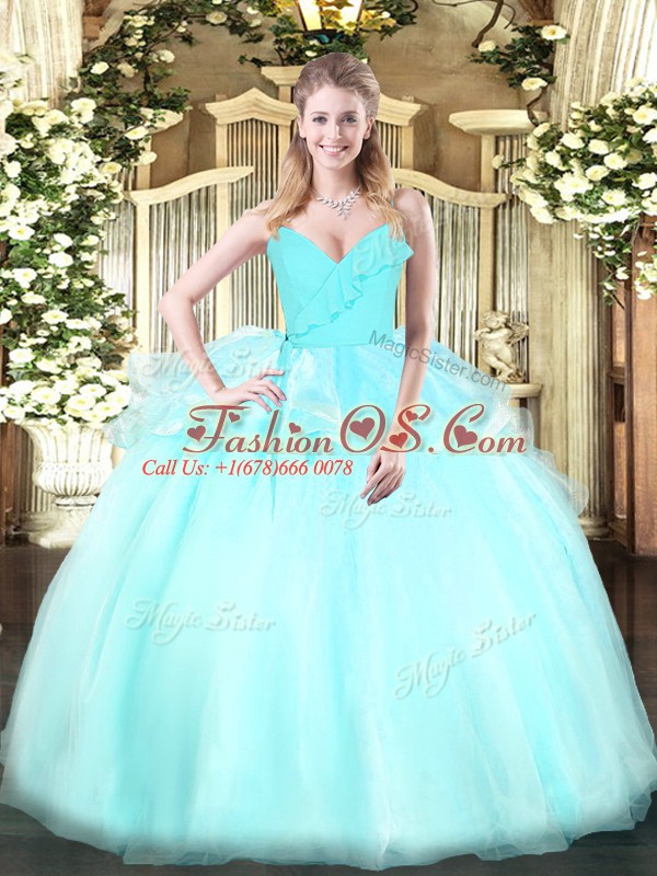 Dazzling Sleeveless Floor Length Ruffles Zipper 15 Quinceanera Dress with Light Blue