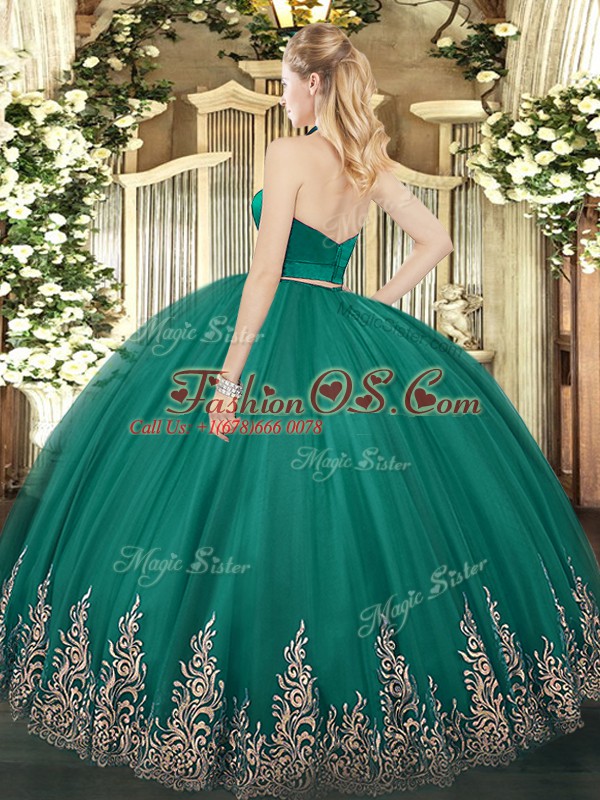 Fancy Fuchsia Halter Top Zipper Appliques 15 Quinceanera Dress Sleeveless