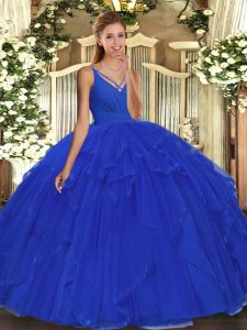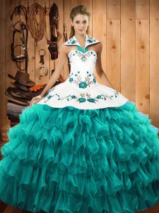 High End Multi-color Tulle Backless High-neck Sleeveless Floor Length Vestidos de Quinceanera Beading and Ruffles
