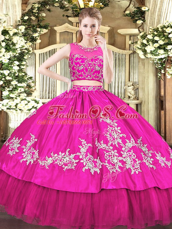 Perfect Floor Length Zipper Sweet 16 Dresses Hot Pink for Military Ball and Sweet 16 and Quinceanera with Beading and Appliques